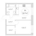 1-к квартира 35,7 м 2 2/4-21 эт.
