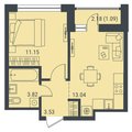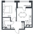 1-к квартира 38,27 м 2 9/7-14 эт.