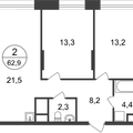 2-к квартира 62,9 м 2 15/17-25 эт.