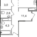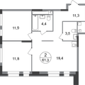 2-к квартира 61,3 м 2 11/17-25 эт.