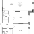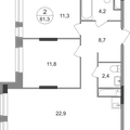 2-к квартира 61,3 м 2 14/17-25 эт.