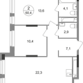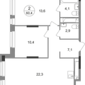 2-к квартира 60,4 м 2 7/17-25 эт.