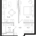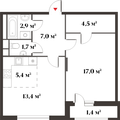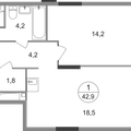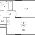 1-к квартира 42,9 м 2 14/17-25 эт.