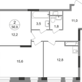 1-к квартира 38,4 м 2 2/17-33 эт.