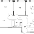 3-к квартира 74,1 м 2 19/17-25 эт.