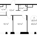 2-к квартира 65,02 м 2 2/2-12 эт.