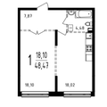 1-к квартира 42,5 м 2 21/17-33 эт.