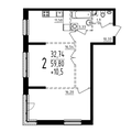 2-к квартира 59,3 м 2 15/17 эт.