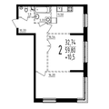 2-к квартира 59,4 м 2 10/17 эт.