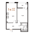 1-к квартира 47,1 м 2 3/7-8 эт.