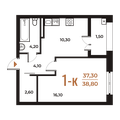 1-к квартира 38,41 м 2 4/2-12 эт.