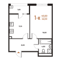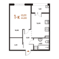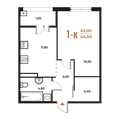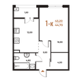 1-к квартира 43,96 м 2 5/2-12 эт.