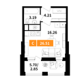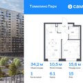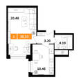 1-к квартира 38,33 м 2 3/6-17 эт.