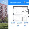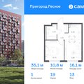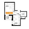 1-к квартира 35,82 м 2 10/6-17 эт.
