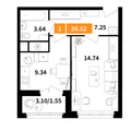1-к квартира 36,52 м 2 5/6-17 эт.