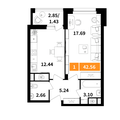 1-к квартира 42,56 м 2 1/6-17 эт.