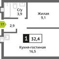 1-к квартира 32,4 м 2 5/6-9 эт.