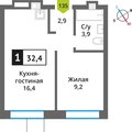 1-к квартира 38,3 м 2 4/6-9 эт.