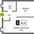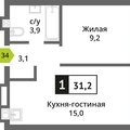 1-к квартира 31,4 м 2 3/6-9 эт.