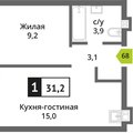 1-к квартира 31,2 м 2 9/6-9 эт.