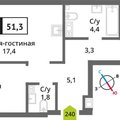 1-к квартира 51,15 м 2 15/17 эт.
