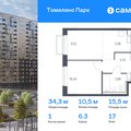 1-к квартира 34,63 м 2 17/9-17 эт.