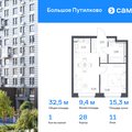1-к квартира 32,54 м 2 11/9-25 эт.