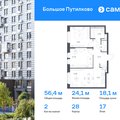 2-к квартира 56,36 м 2 17/9-25 эт.