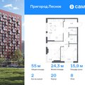 2-к квартира 63,55 м 2 5/6-17 эт.
