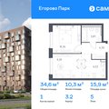 1-к квартира 34,08 м 2 2/12 эт.