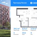 1-к квартира 34,13 м 2 17/9-17 эт.