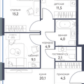 2-к квартира 64,9 м 2 18/17-25 эт.