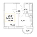 1-к квартира 37,17 м 2 3/4 эт.
