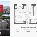 2-к квартира 59,57 м 2 6/17-23 эт.
