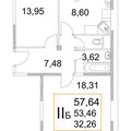 2-к квартира 57,9 м 2 1/4 эт.