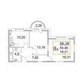 2-к квартира 54,0 м 2 1/4 эт.