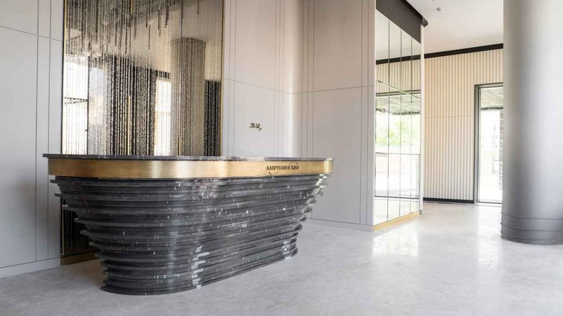 Дом находится в глубине приватного двора-парка площадью 1,4 га. В «Лаврушинском» есть просторное лобби с баром, мягкой мебелью и стойкой ресепшен, а также фитнес, бассейн и детский клуб.