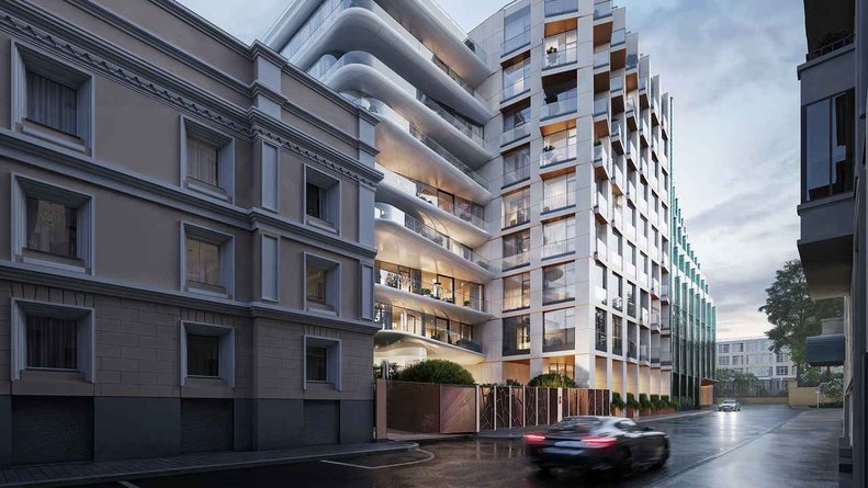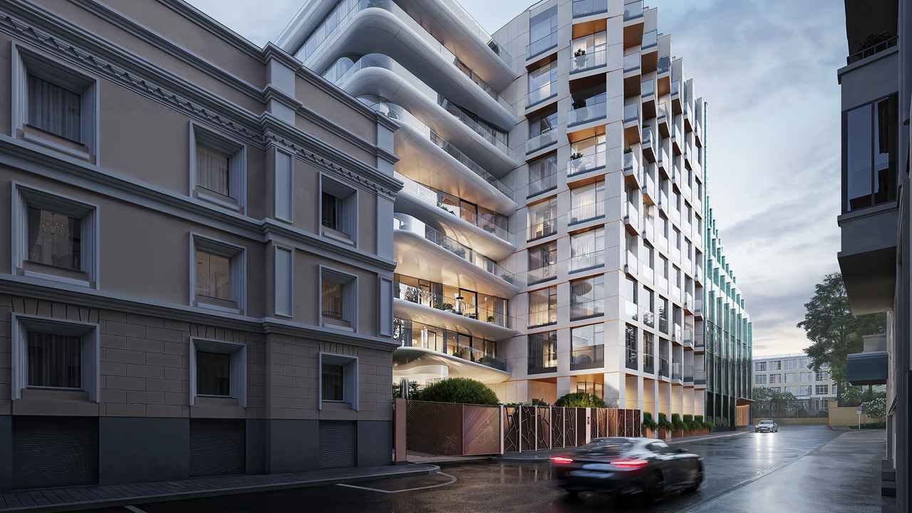 Проект уже получил награду международного конкурса International Design Awards 2025 в категории «Архитектура многоквартирных жилых домов». Общая стилистика здания не повторяет окружающую историческую застройку, а вносит в нее современный акцент.