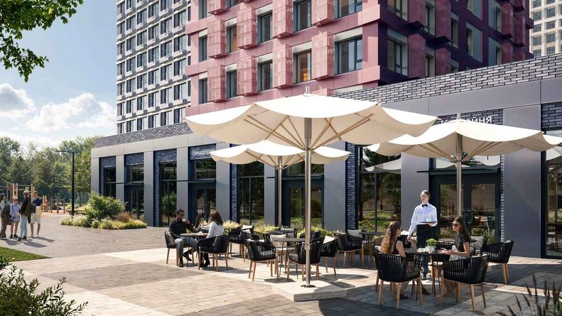Чтобы прогулки во дворе были приятными и безопасными, на территории проекта предусмотрена «медленная зона» для электросамокатов. В период с 07:00 до 24:00 их скорость автоматически снижается до 15 км/ч.