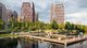 Особое внимание уделено террасам на верхних этажах: остекленные конструкции обеспечивают панорамные виды на пруд и приватность. На первых этажах разместятся кафе, магазины и сервисы, а отдельная торговая галерея станет местом для повседневных покупок и встреч.