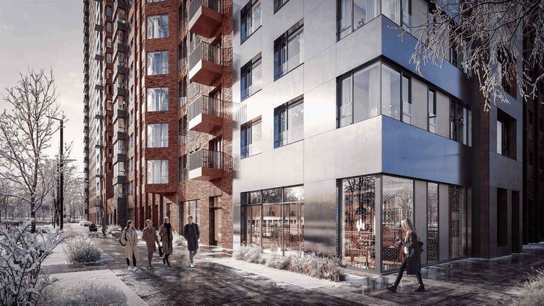 На первых этажах в квартале «Москворечье» начнут работу магазины и кафе, расположенные вдоль пешеходных галерей. Запроектирован досуговый и торговый центры.