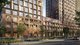 Большие угловые окна, геометричные вставки из стекла и металла, а также фигурные корзины для кондиционеров формируют сложную фасадную композицию. Панорамное остекление галерей на первых этажах создает игру светотеней, визуально связывая интерьеры с парковой зоной.