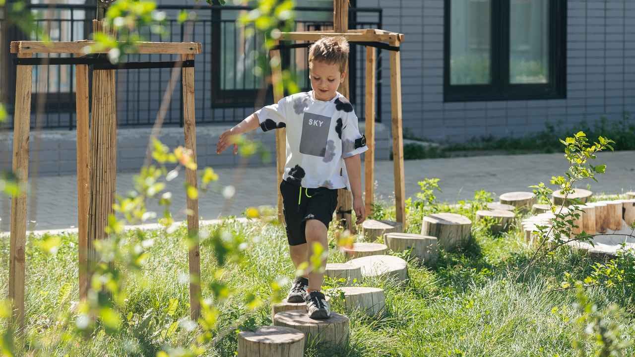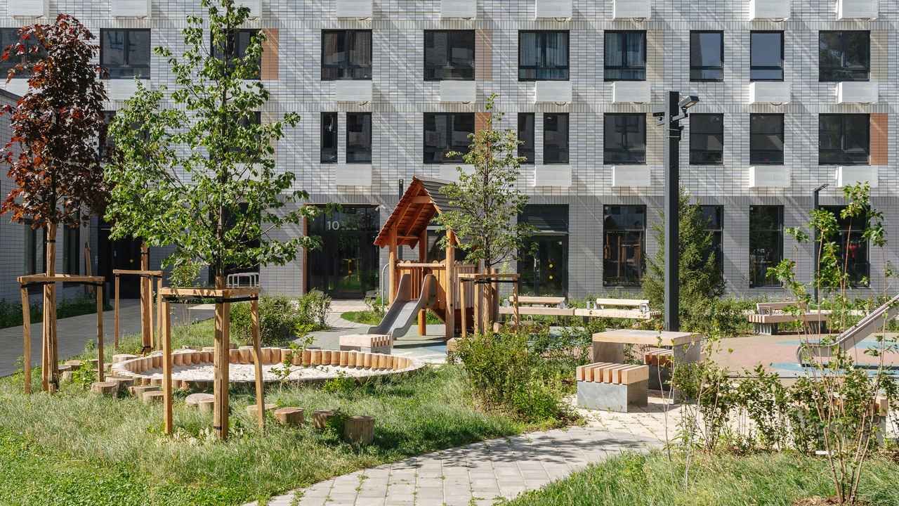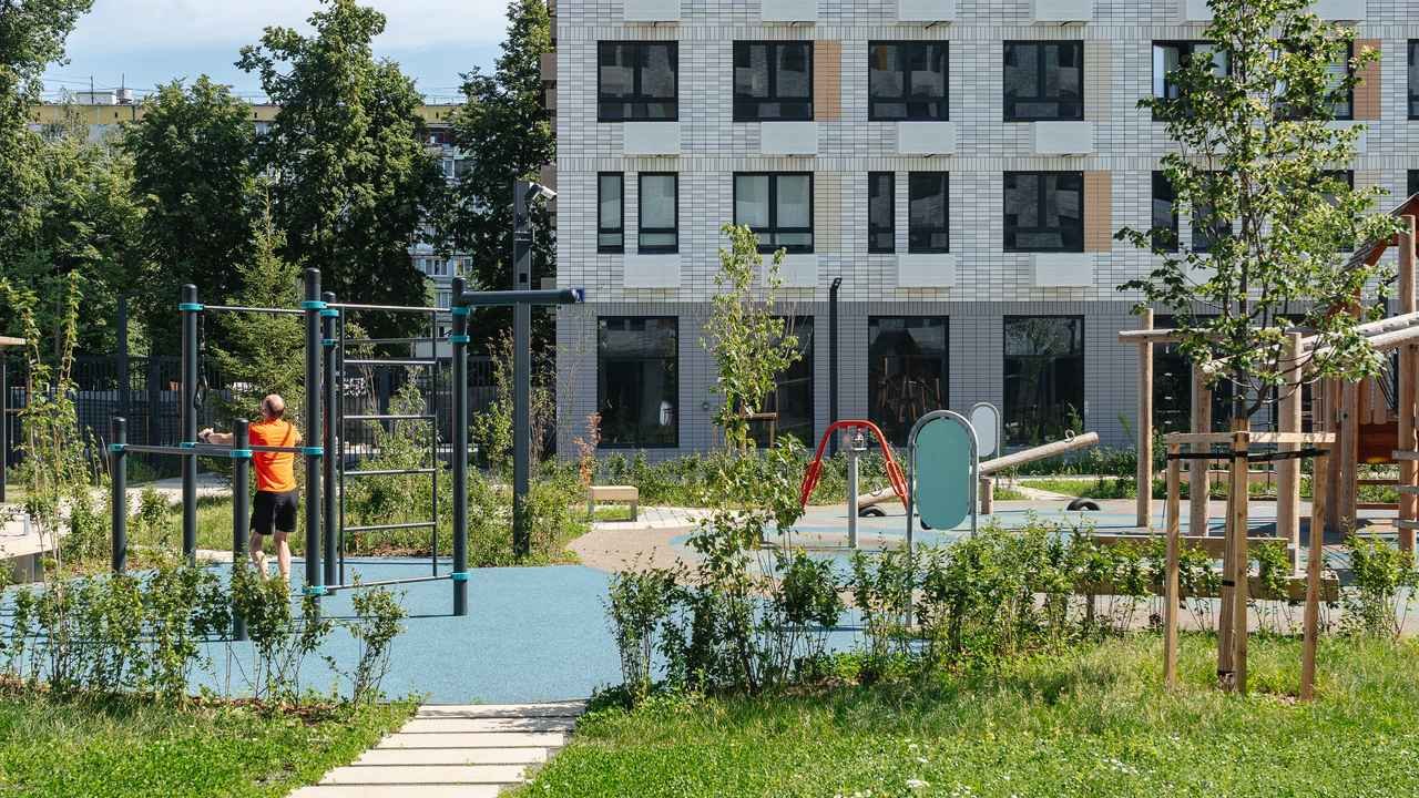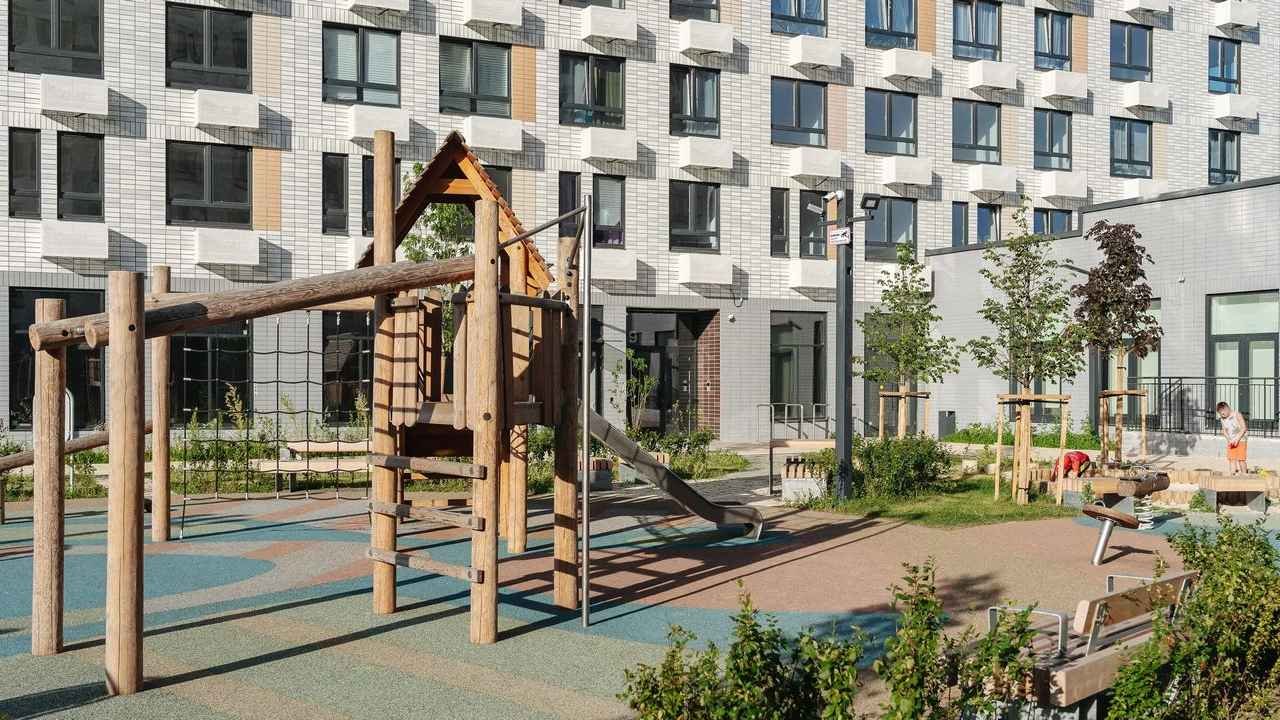 Внутренняя территория закрыта для посторонних. Дворы-парки оборудованы детскими и спортивными площадками, покрыты беспроводной сетью.