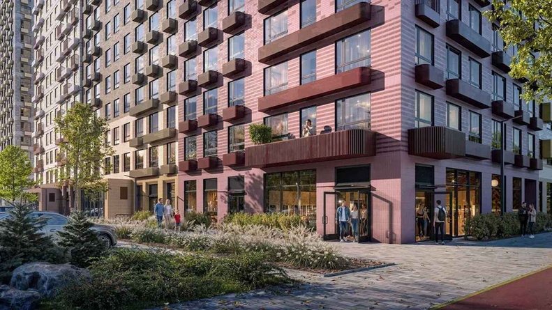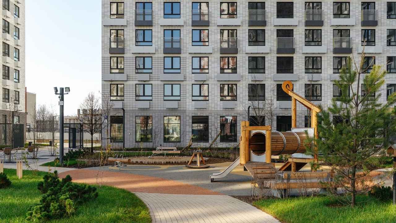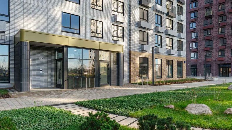 Выразительным архитектурным приемом фасадов стала переменная этажность корпусов от 9 до 25 этажей. Четкие линии зданий не «давят», и во внутренних дворах сохраняется ощущение простора.