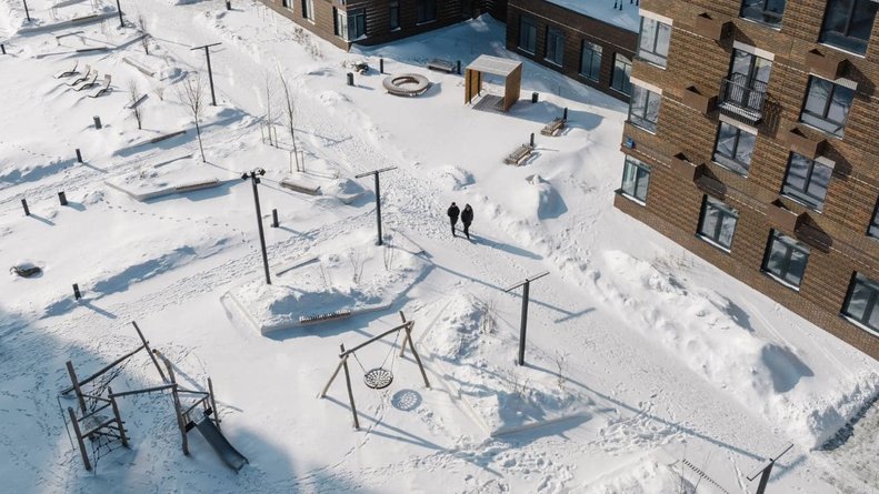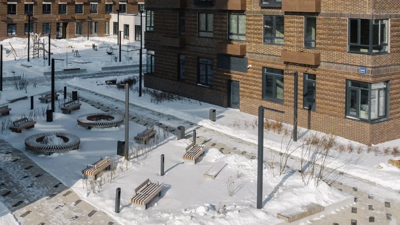Чтобы прогулки во дворе были приятными и безопасными, на территории проекта предусмотрена «медленная зона» для электросамокатов. В период с 07:00 до 24:00 их скорость автоматически снижается до 15 км/ч.