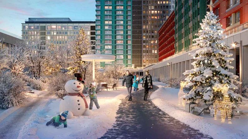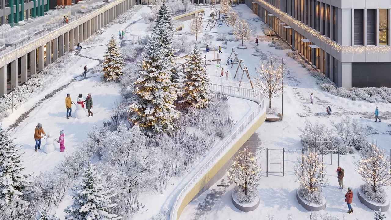 В проекте «Инджой» запланировано строительство собственной школы на 750 учеников, детского сада на 325 мест, спортивного центра с бассейном. На первых этажах откроются магазины и кафе.