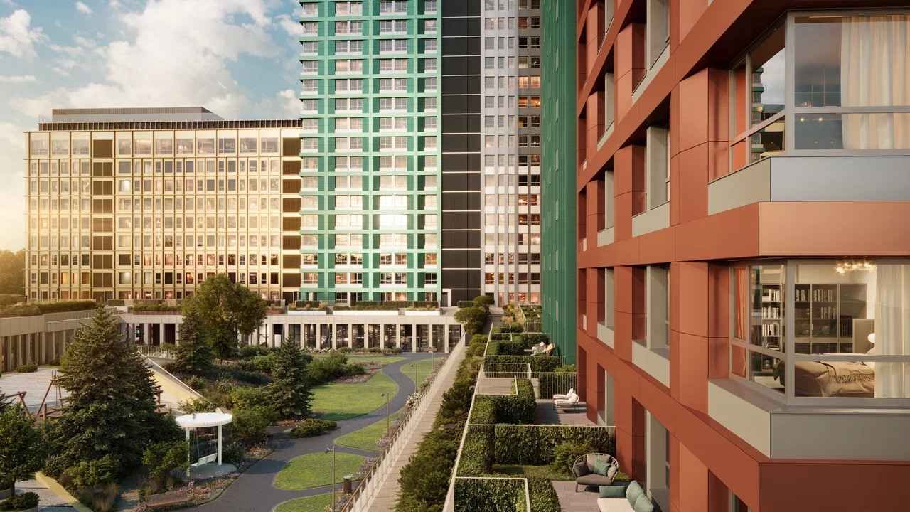 Комплекс состоит из четырех 35-этажных башен, объединенных общим стилобатом. На его кровле запланирован променад, а внутри откроются магазины и кафе.
