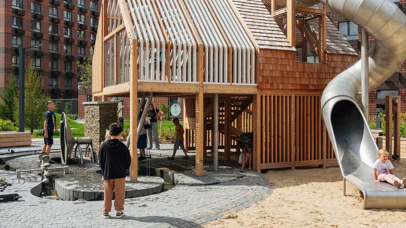 Пешеходный бульвар выведет жильцов к центральной площадке проекта, где запланирован игровой хаб «Ферма» — масштабная детская игровая зона с домом-мельницей, ветряками, водяными помпами и местами для отдыха родителей. В 2024 году игровой хаб был признан «Лучшей реализацией игровой площадки среди девелоперских проектов» по итогам «Всероссийской премии лучших проектов создания игровой среды».