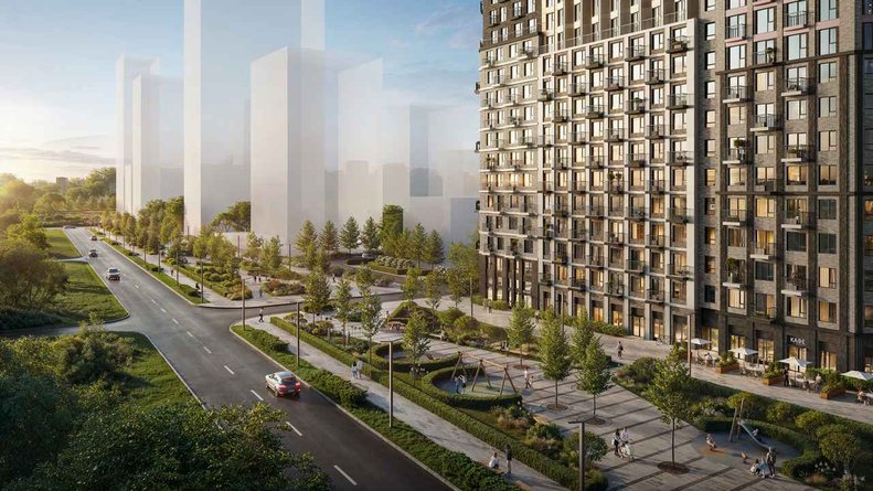 На закрытой территории разместятся 12 жилых корпусов, надземные паркинги, детский сад и школа. Центральной рекреационной зоной станет пешеходный бульвар площадью 1 га.