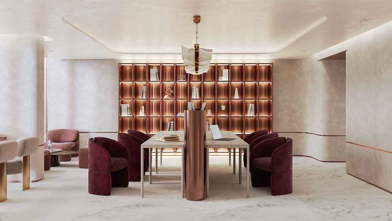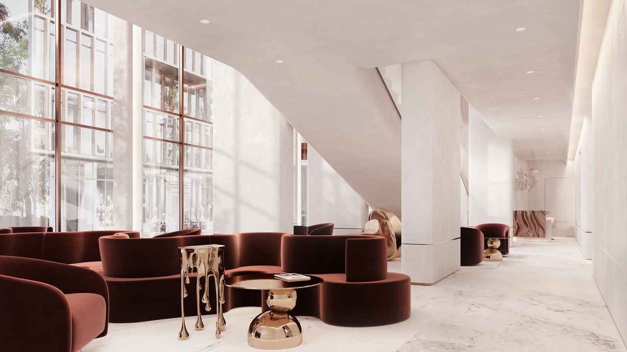 Особое внимание уделено дизайну лобби – минималистичное оформление выполнено в светлых тонах и строгих формах архитектурным бюро «Бабайнтс» (Babaynts). Используются керамогранит, матовый акрил и стекло, что создает элегантный и современный облик помещений. В лобби также можно будет увидеть футуристичную лестницу с подсветкой ступеней, создающую неповторимый атмосферу.